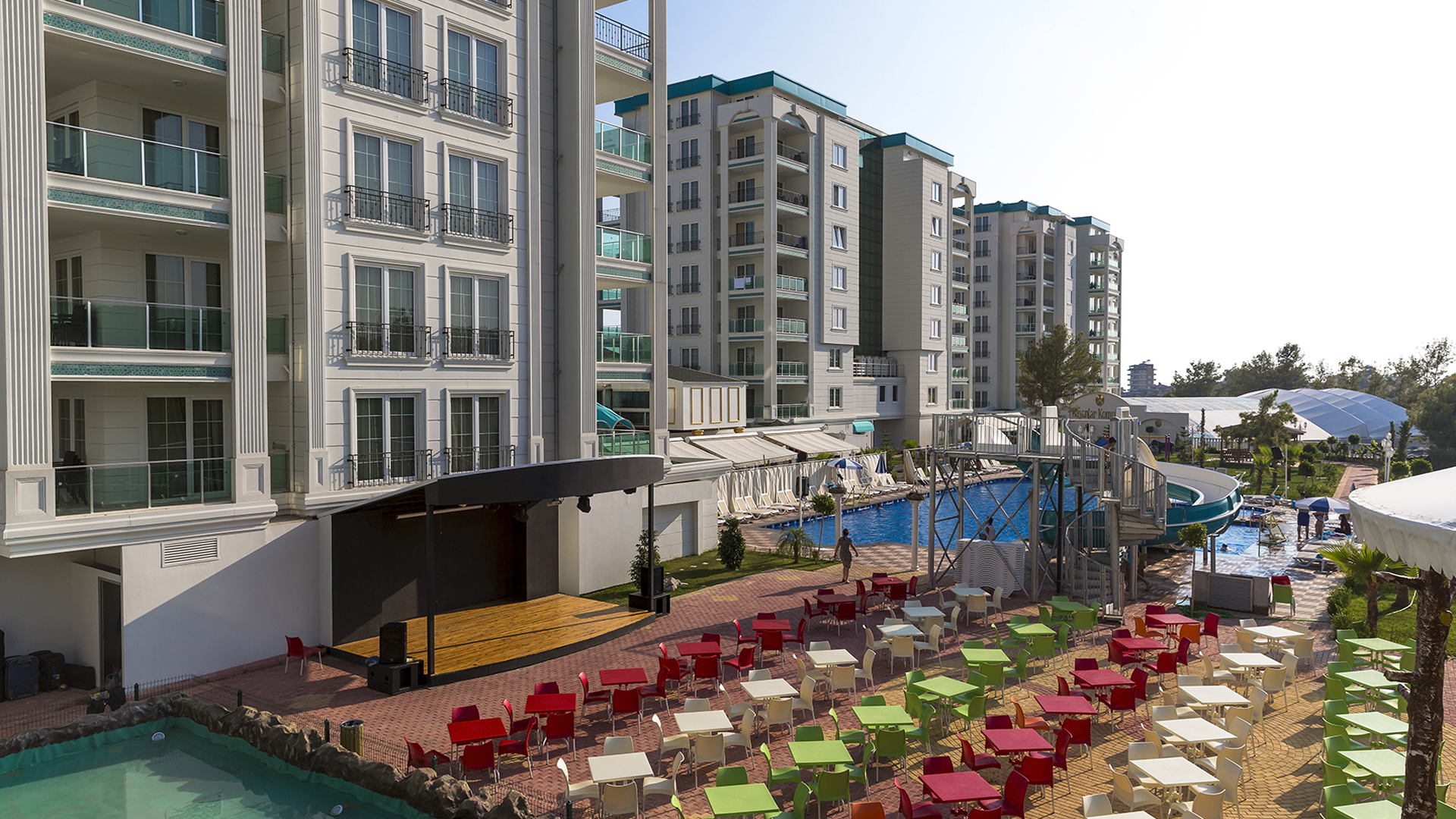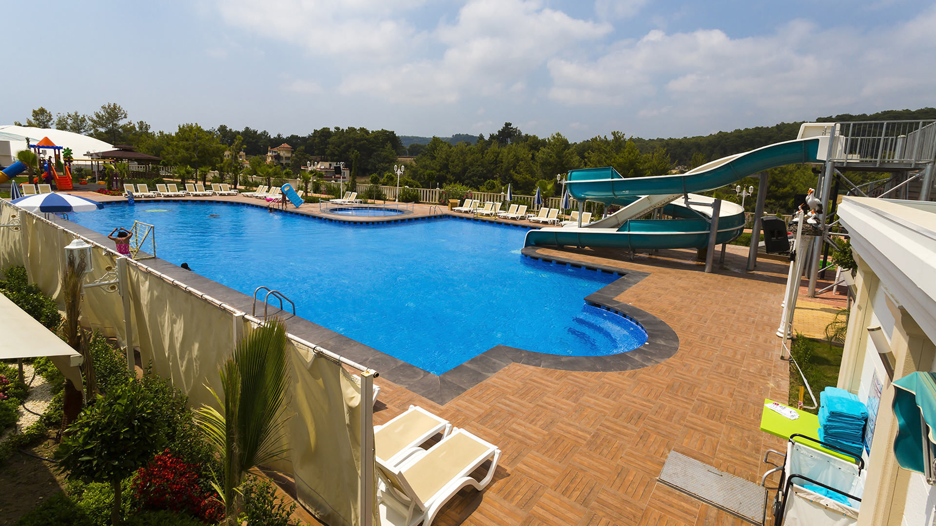 Otelimizde bay ve bayanlar için ayrı havuz, açık ve kapalı havuz ve aquapark bulunmaktadır. Ayrıca bay ve bayanlar için hamam, sauna ve masaj odaları mevcuttur. Denize 1100 m mesafede bulunan tesisimizde deniz kenarında su sporları ile eğlenceli bir tatil geçirebilirsiniz. Tesisimizde gün boyu yapılan animasyonlarla eğlenceye doyacaksınız. Akşamları ise canlı müzik ile eğlenceli dakikalar sizleri bekliyor.